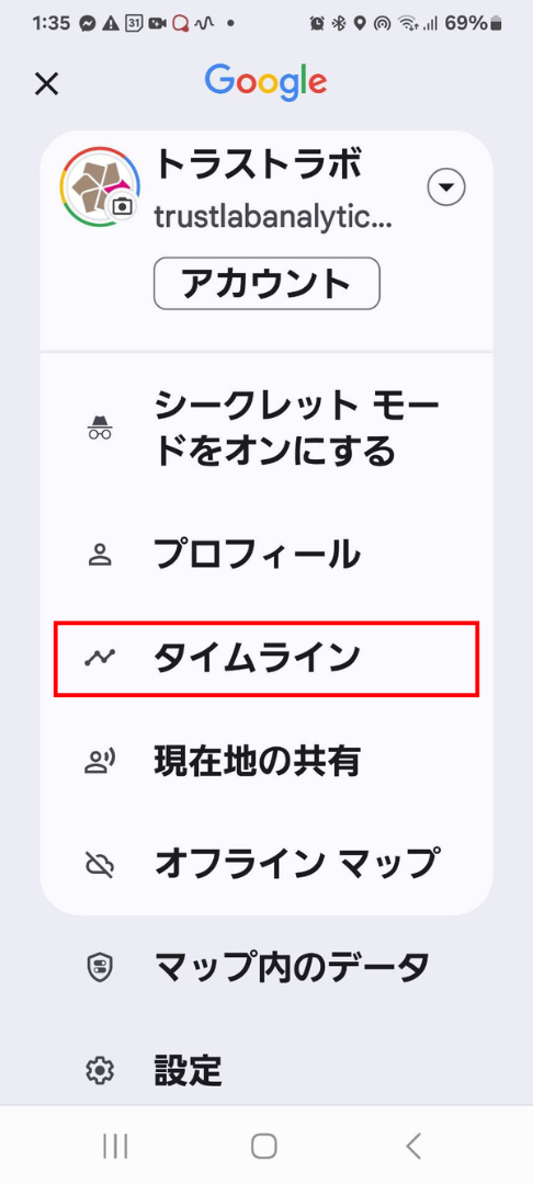 スマホでGoogleMAPアプリを開き、アカウントアイコンをタップ