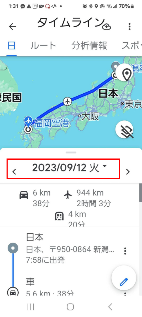 私は2023年に福岡に行った日付を指定してみました。すると飛行機の空路がたどれました!