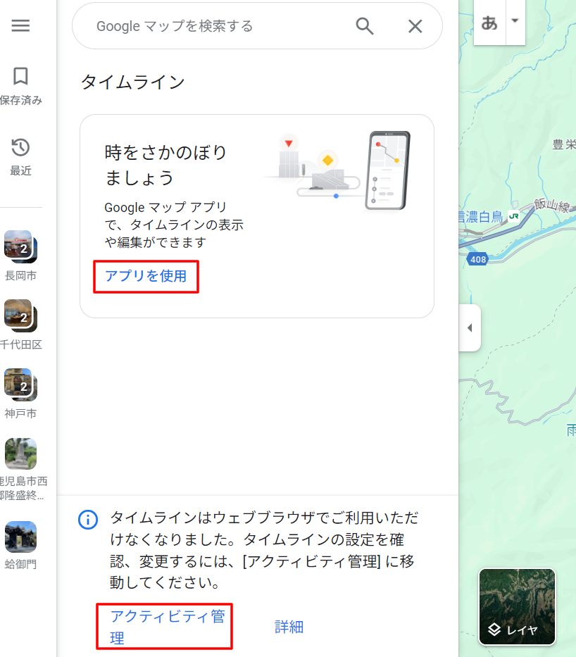 旅行の後には Google マップのタイムラインを開き「 こんな経路であんなところに行ったな~」と旅情に浸ることができたタイムライン。
