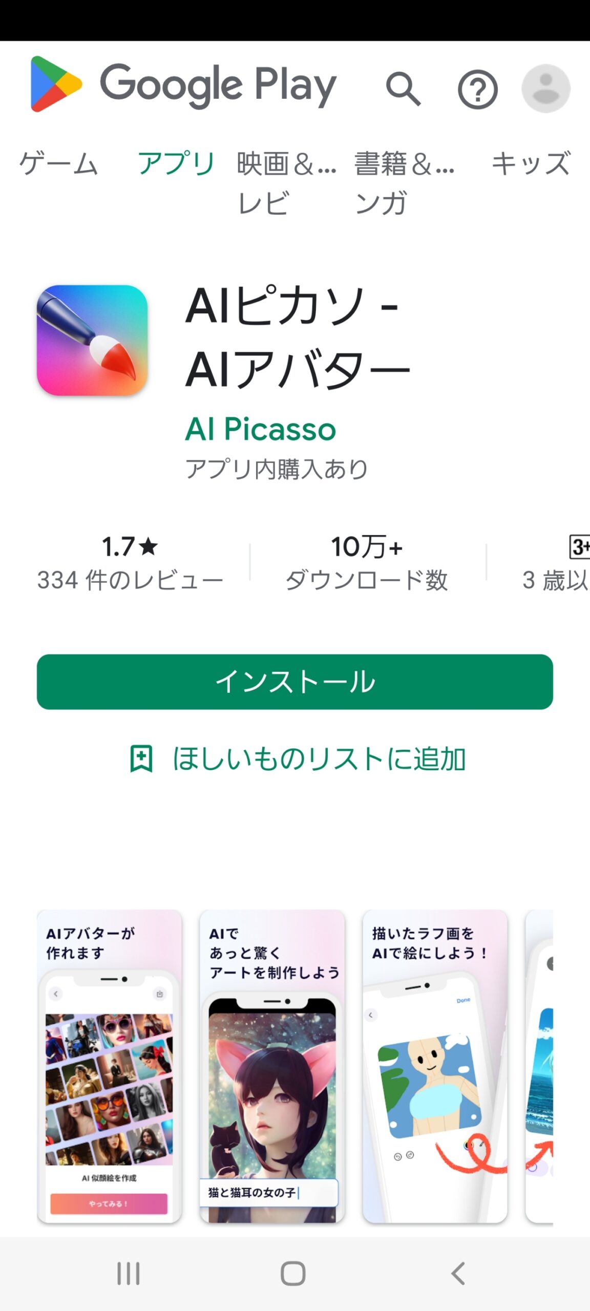 AIピカソアンドロイド版で遊んでみました。